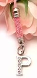 Pink Initial P Cell Phone Charm Strap Rhinestone accessorizes your cell phone, mp3 players, iPods and more. To attach cell phone charm to phones with a charm loop, thread strap through the holes and then thread charm through strap to secure. To attach cell phone charm to phones without a loop hole, remove the battery cover from your cell phone and attach the cell phone strap to the hook that is inside your phone and place battery cover back on the phone to secure.