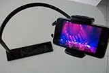 This hands free smart phone holder works well. Its simple design makes this smart phone holder a gem. Simple, light weight. Use it anywhere. Just sit on the base. 27" long well made goose-neck tubing. Universal cradle opens to hold even the largest Smart Phones.