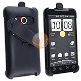 Secure your HTC EVO 4G with a hard plastic pager-style holster that clips to your belt and can adjust to whatever angle is most comfortable and convenient for you. This Swivel Holster for HTC EVO 4G holds the phone with the LCD facing outward. Unique swivel design lets you rotate the clip 180-degrees sideways at several fixed intervals for convenient positioning. Material: Durable plastic (PVC). Color: Black. Size: Perfect fit. Note: This holster may not fit a phone using an extended battery, which is much thicker than the original (standard or slim) battery. Compatible With HTC: EVO 4G / Supersonic.