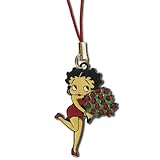 Licensed Betty Boop Cellphone Charm Betty Boop Wearing a Red Dress While Holding A Bouquet of Red Flowers