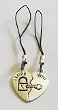This set includes two separate cell phone charms that together form a set!!! Show your love to someone by sharing this set of two cell phone charms-each charm has half of a heart that fits together to form a lock and key with the words "I Love You" above it. One side of the heart has the lock, while the other side has the key. The silver colored charm is light and perfect for your cell phone-it is only about 15mm high and made of zinc alloy metal. The black cell phone strap / lariat is high quality and approx. 5 cm. long. Check out Enigma Charms on Amazon for other cell phone charms by this designer.